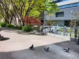 Located along the Yodogawa tributary between Yodoyabashi Station and Higobashi Station on the Osaka Metro, the park is just a 3-minute walk from Yodoyabashi Station. Situated on the southern riverbank and surrounded by commercial office buildings, the park becomes a popular spot for office workers on sunny weekdays. Many enjoy their lunch in the outdoor seating areas, basking in the sun, or even reading a book under its warm rays.