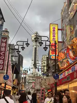 This area, just near Tsutenkaku Tower, shines with lively neon lights and is full of that unmistakable Osaka vibe! Just walking around here is endlessly exciting 🎉