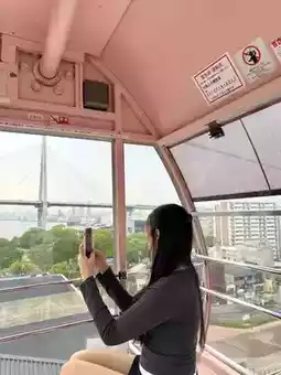 🎡The view from the top is stunning, offering a wide view of Osaka Bay, Universal Studios Japan amusement park, and the red Minato Bridge. You can also see the grand Santa Maria ship.