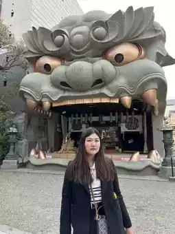 🦁 The “giant lion head” over 12 meters tall, standing proudly in the middle of the shrine!