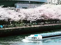 Want to explore Osaka’s charm from a different perspective? The **Aqua Liner Water Bus** is your perfect choice! This sleek blue and white boat carries passengers smoothly between the Dotonbori and Tosabori Rivers, offering stunning views of landmarks like Osaka Castle and Tsutenkaku, while getting up close to the lively streets and neon lights of Dotonbori.