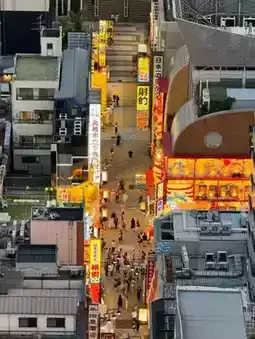 Walking in feels retro, like stepping back to the Showa era. Neon signs, vibrant colors, rows of restaurants, especially the signature dish of the area, Kushikatsu (deep-fried skewers). Eating it with beer is the best. The main landmark is Tsutenkaku Tower, beautifully lit at night—perfect for photos. At the top, there’s a 360° observation deck with a clear view of Osaka. Around it, there are game arcades and small bars.