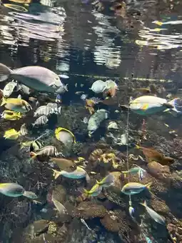 • There are giant stingrays, various species of sharks, and schools of fish filling the tank