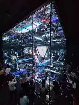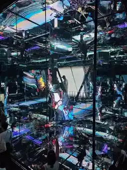 Inside, 360-degree LEDs and mirrors are arranged, allowing visitors to experience a theater space surrounded by mirrors and images, as if in another dimension.