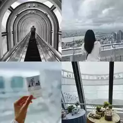 The highlight is probably the tunnel staircase where many people take photos. This area is free to enter with no charge, and you can go up and down as many times as you want. However, to access the observation deck, you need to buy a ticket. Inside, there is also a café and souvenir shops.
