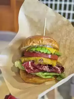 The 100% beef patty is juicy and packed with rich meat flavor.