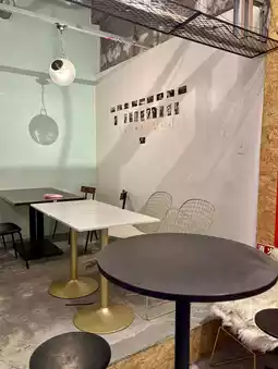 The interior is a spacious area with about 100 seats, offering a calm atmosphere despite the food court style. You can enjoy lunch as well as dinner, combining dishes from adjacent stores. It’s convenient and welcoming for both solo visitors and groups.