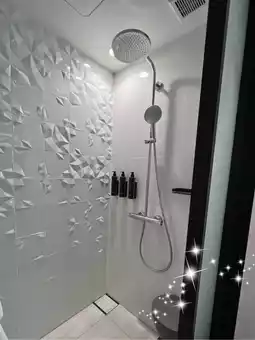 • The sink area is spacious, and the hairdryer has strong airflow.