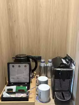 On the first floor, there is a breakfast restaurant where you can purchase a buffet breakfast if desired. Next to the front desk, there is a self-service bar, vending machines, and a printer available for use.