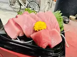 At one seafood stall, we were drawn to a whole slab of pink tuna. The vendor divided the tuna into different cuts, serving sashimi or sushi made to order. The vibrant color and evenly marbled fat of the tuna made our mouths water. We also saw fresh sea urchin, scallops, and various grilled seafood, each bursting with the ocean’s fresh flavor.