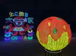 With the illuminated Osaka Castle main tower as the backdrop, various colorful lights were displayed—perfect for photos.