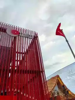 The wavy design of the Turkish Pavilion at the 2025 Osaka Kansai Expo symbolizes Turkey's proximity to the Mediterranean and Black Seas. The entrance welcomes visitors with the "crescent and star" emblem from the national flag. The interior features boron-coated wood, a rich source of boron in Turkey.