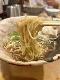 The owner, who has an Italian background, creates a bowl of ramen that is light yet packed with flavor. The interior, with its warm wooden interior and autographs of famous people, is popular with locals and tourists alike.