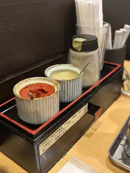 The skin is crispy and fragrant, and the filling is juicy with a hint of garlic. A perfect match with ramen.