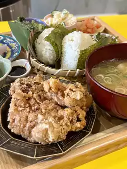 You're sure to be full with this onigiri set meal and all-you-can-eat fried chicken!