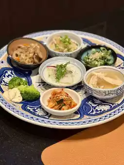 Kimchi, winter melon and taitan (sea urchin), squid carpaccio, and Kujo leeks