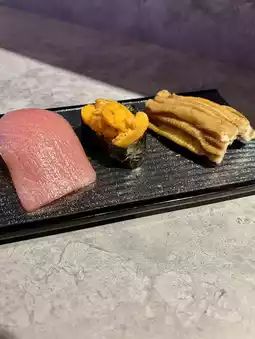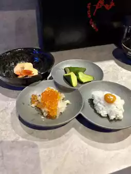 The extraordinary atmosphere, created by the lighting and music, is perfect for dates, girls' nights, and anniversaries. This is a new and exciting spot in Kyobashi, recommended for those looking for an evening that's more than just sushi.