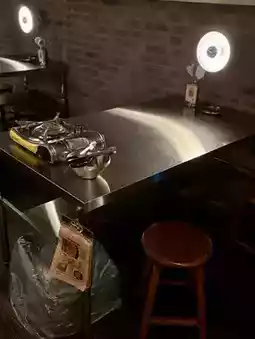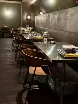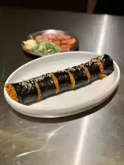 Open the commercial refrigerator-like door and you'll find a modern space reminiscent of a Korean food stall. Enjoy a wide selection of authentic Korean dishes, including thick, aged samgyeopsal, jjukkumi, and cheese kimbap.
