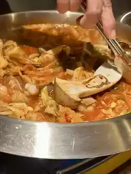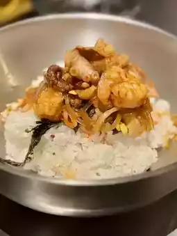This deliciously spicy hotpot of octopus, innards, and shrimp combines the rich flavor of gochujang with the exquisite flavor of seafood. The spiciness was deep, giving it the feel of a Korean street food stall.