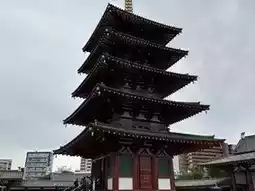 The temple's main structures, including the five-story pagoda, the Kondo Hall, and the lecture hall, are designed in accordance with ancient traditions, featuring vibrant colors and rich details. Standing approximately 32 meters tall, the pagoda is the temple's iconic landmark and often appears particularly magnificent against a clear blue sky. At sunset, the tower is bathed in golden light, creating a picturesque scene.