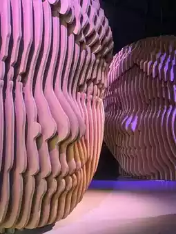 Inside, you'll find a variety of exhibits, from beautiful displays to robots and artistic pieces. It felt like you were experiencing multiple experiences in one pavilion.