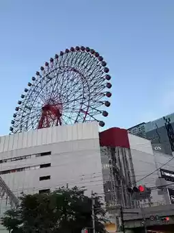 ✨ A symbol of Umeda, the red Ferris wheel offers stunning views of Osaka from a height of 106 meters, including the Dotonbori River.
