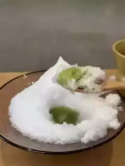 The appearance is simple and pure white shaved ice. Beneath the fluffy ice lies soft walnut mochi and edamame paste 💗. This combination is truly exquisite, and as you continue eating, the rich flavor of the paste and the nutty aroma of the walnuts blend together, creating a delightful change in taste ☺️.