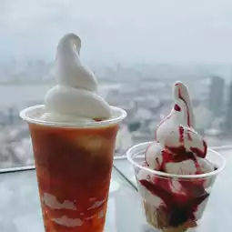 After exploring the Heart Lock Area, enjoy a cup of coffee and a sweet treat at Cafe SKY 40, also located on the 40th floor. They serve their signature original coffee roasted in-house, along with delicious desserts like the uniquely shaped "Umeda Sky Building Pancake" and "Croffle (Cream Pancake)." Paired with the city views, the place is a truly relaxing and romantic experience, both visually and in the palate.