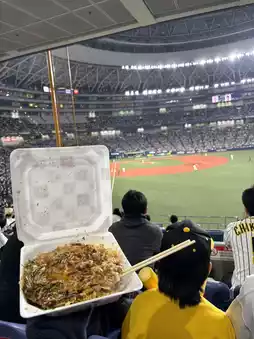 Finally, we watched the Hanshin vs. Orix game at Kyocera Dome while enjoying takoyaki, okonomiyaki, and Kansai-exclusive dashi soy sauce potato chips. ⚾️