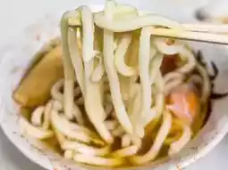 This small udon shop is located next to Tsutenkaku Tower in Osaka Prefecture, Japan. This hidden gem, known only to locals, is famous for its delicious food and affordable prices. The shop has limited counter seating. Udon starts at just 210 yen per bowl, and the portions are regular, not small.