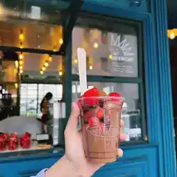 I recommend the chocolate-covered strawberries. It's delicious and refreshing. The tartness of the strawberries contrasts perfectly with the sweetness of the chocolate. They pour the chocolate over you right there. But if you order just this, you can take it home; you can't sit in the shop.