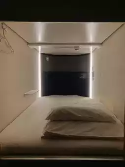 The capsule rooms were surprisingly spacious, with extra space for chargers and phones, which was very satisfying.