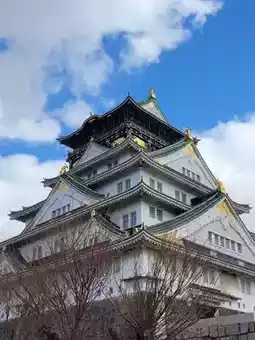 One must-see attraction is Osaka Castle. While it's not cherry blossom season in February, you can still see plum blossoms in the gardens surrounding the castle, which are just as beautiful.