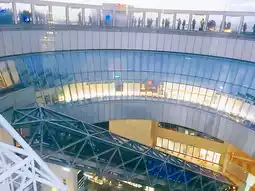 The Umeda Sky Building, 173 meters high, consists of two skyscrapers connected by a sky bridge. Its top floor features the Floating Garden Observatory. Take a high-speed elevator to the observatory for breathtaking 360-degree views of the city:
