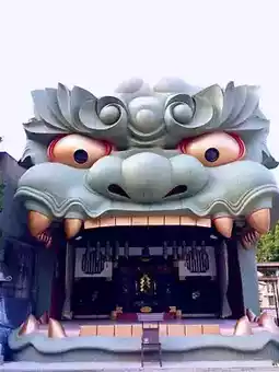 This lion's head-shaped structure, approximately 12 meters tall and 11 meters wide, is the symbol of the shrine. It's said that the lion's enormous mouth swallows up disasters and evil spirits, bringing good luck and victory to those who visit, making it a popular spot for students, test-takers, and athletes.