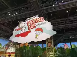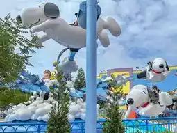 This ride is themed around Snoopy, disguised as a pilot, and the Flying Ace.