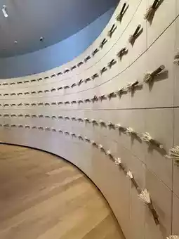 The Polish Pavilion showcases Polish nature, culture, and music through beautiful video footage. The warm architectural space, featuring ample wood, is particularly impressive. Entering the pavilion makes you feel as if you're in the middle of a forest.