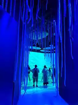 ☝No reservation required, so we lined up on the day to enter. The approximately 10,000 ropes used in the pavilion itself are made from recycled fishing nets and other materials, and are meant to represent ocean waves. It was a fantastical yet striking warning from the sea.