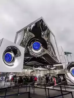 Imagine strolling beneath a dreamy wooden ring called "Daikan Ring" 🌳, a gateway to the future 🚪. We can also explore incredible pavilions from various countries: take selfies in Saudi Arabia's mirrored palace 🤳, play games with clever slime molds in the German Pavilion 🧠, or sway to the rhythm of flamenco in the Spanish Pavilion 💃!