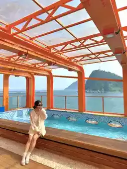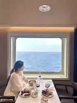 A healing journey on a luxury hotel floating on the sea! This is a unique travel experience where you can enjoy the ocean view while traveling to Japan. Unlike flying, this cruise offers a different charm with dinner and breakfast buffets on board, night performances, jacuzzis and saunas to relax while enjoying the ocean view, and even an outdoor swimming pool on the rooftop for a pool party vibe! With so many activities to enjoy, the long travel time feels like nothing but pure romance. 🤍
