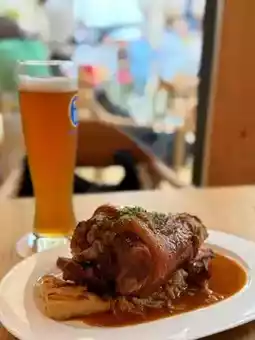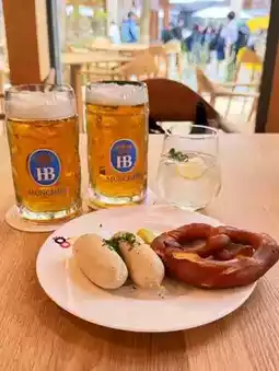 The German beer and sausage set we ordered in the courtyard was a perfect match, and we were very satisfied. The menu that day was white sausage and pretzels. The pork knuckle is a must-try; it's generous, yet incredibly tender and delicious. The impressive exhibits continued into the courtyard for a break, making it a truly unforgettable experience.
