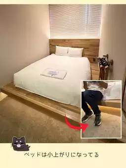 Our room was compact, but clean, and the raised bed felt like sleeping on a futon, so it was relaxing!
