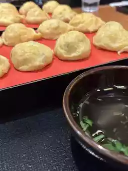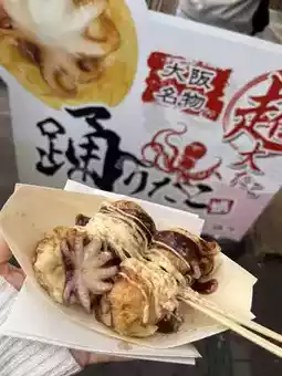 The takoyaki is sandwiched, so no worries about dirty hands!