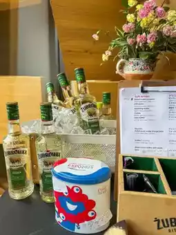 We recommend the Polish specialty, Zubrowka, mixed with apple juice.