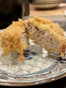 The sweet, melt-in-your-mouth flavor of the loin and the tenderloin are moist and tender. The batter is light and crispy. The menchi-katsu is juicy, and I personally recommend finishing it off with a bowl of ochazuke (tea bowl) in dashi broth. The umami of the dashi and minced meat combine to create a delicious dish you won't tire of until the very end.