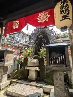 This small temple is located in the heart of Hozenji Yokocho. A leisurely stroll through the area takes less than 10 minutes, and there are no particularly spectacular treasures. The surrounding area is lined with Dotonbori's various shops, both large and small, creating a lively hustle and bustle throughout the day and night. However, even amidst the hustle and bustle, the temple naturally evokes a distinct atmosphere, distinct from the commercial district, and visitors quietly worship. The temple grounds are small, so groups of around 10 people may feel a bit cramped. For this reason, we recommend visiting in small groups. As mentioned above, there are no particularly eye-catching features, but the temple's unique Mizukake Fudoson statue stands out. It's said that if you think about your wish and pour water on it, it will come true. The statue is now covered in moss, thanks to the many people who pour water on it. While pouring water on it isn't required, it's worth trying it for your everyday small wishes.