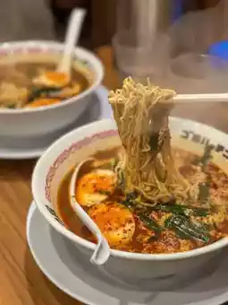 Are you always hitting the convenience store when you're hungry late at night during your trip to Osaka? This is the place to go! Located in Tsutenkaku, this restaurant is open until 4 a.m. and offers a variety of menu items like ramen, curry, and omelet rice, so you can have a full meal! I had the Kara Ramen, and it tasted like sesame ramen and was delicious ♥︎ The red broth wasn't overly spicy, and the chewy chives, fluffy egg, and ajitamago (spicy ajitamago) were a perfect combination!