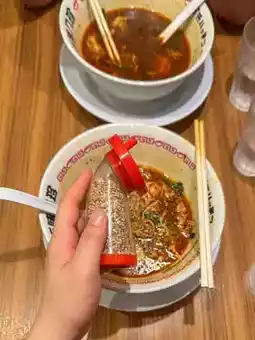 There's sesame seeds on the table. Grinding them in adds an even more nutty flavor, so be sure to try it!