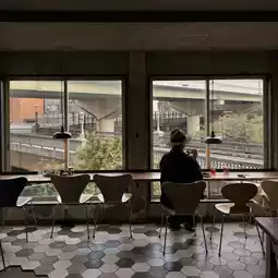 I discovered a unique blue three-story coffee shop nestled along the Osaka River in the northern part of Osaka!