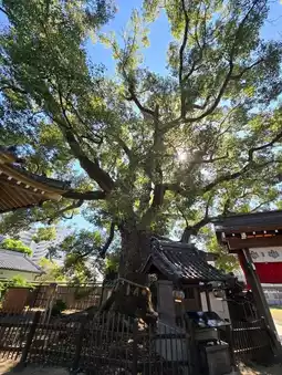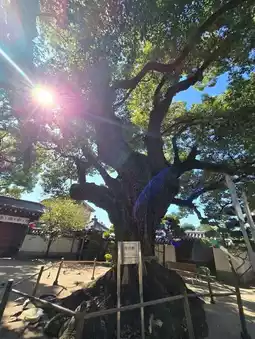 The temple grounds feature an approximately 800-year-old camphor tree and the White Dragon Pond, where large Nishikigoi carp swim.